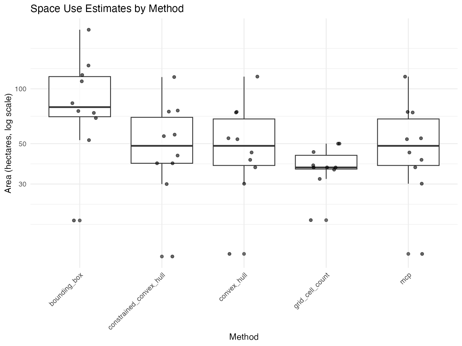 - Space Use Analysis: Estimated home ranges using multiple methods